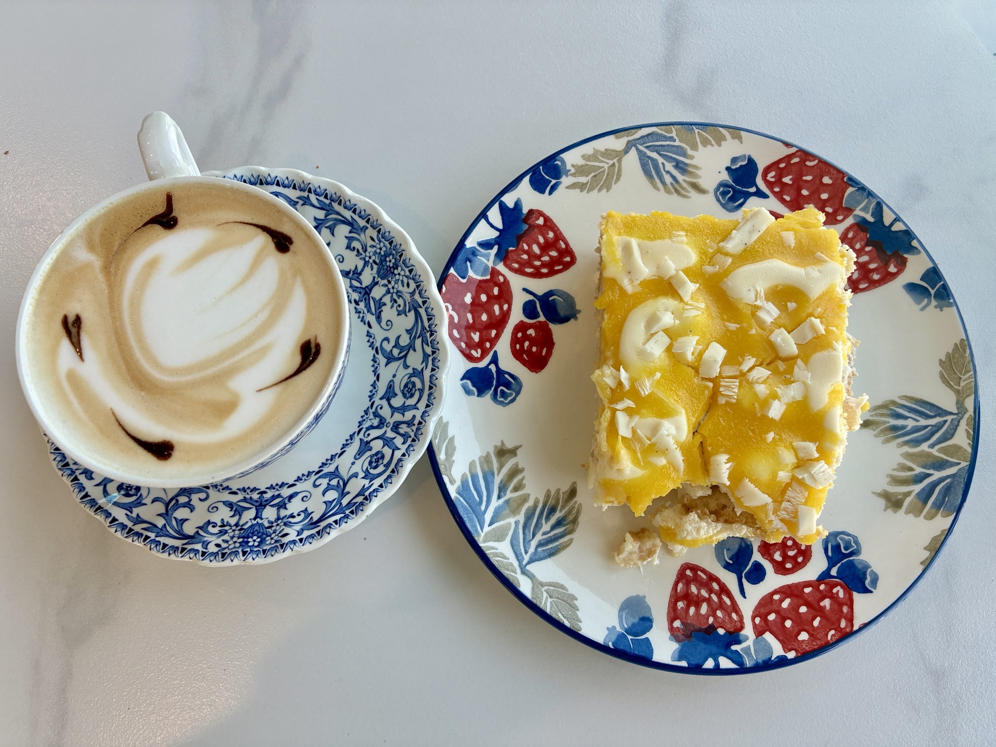 Dolce is at Second Street and McKinley, four blocks from Roosevelt/Central station on the B Line. Bike racks are found directly outside along McKinley. The cafe is immediately visible due to its colorful signs with both pictures and words advertising its specialties in terms of pastry, pasta, and pizza. Although the Derby’s stucco walls and slapdash parking podium make it one of the least attractive high-rises in Phoenix, Dolce works overtime to undo any aesthetic damage at street level with a surfeit of selfie-worthy colorful decor in a floral theme.