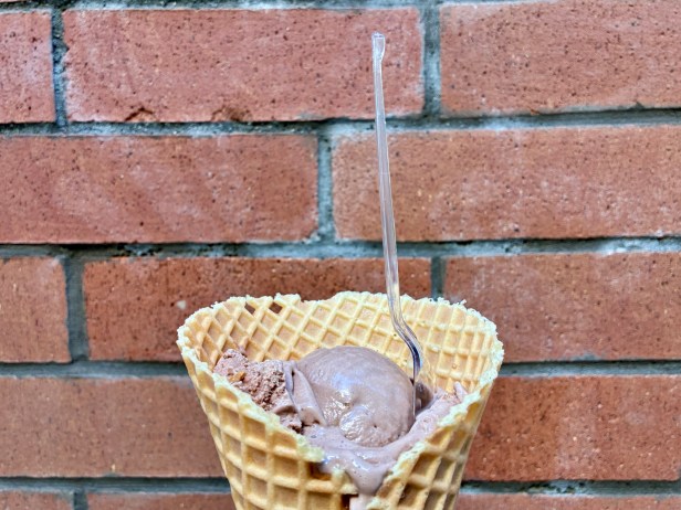 The shop is sunny and simple with white tables surrounding the counter, two red booths in a back room, and ample space for outdoor ice cream appreciation in the courtyard of the mixed use development that Sweet Retreat is part of. The menu is a simple one: The shop offers a myriad of frozen flavors from BYU Creamery, an ice cream purveyor that is part of Brigham Young University’s dining services, and little else. While there is the choice of cake, sugar, or waffle cones, there are no toppings, sundaes, or shakes. Here, the ice cream speaks for itself.