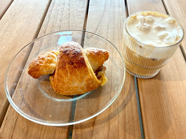 ham and gruyere croissant with shaken espresso