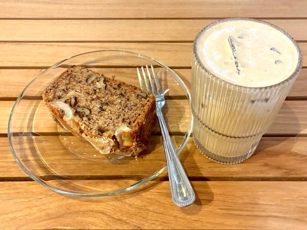 hazelnut latte banana foam and banana bread