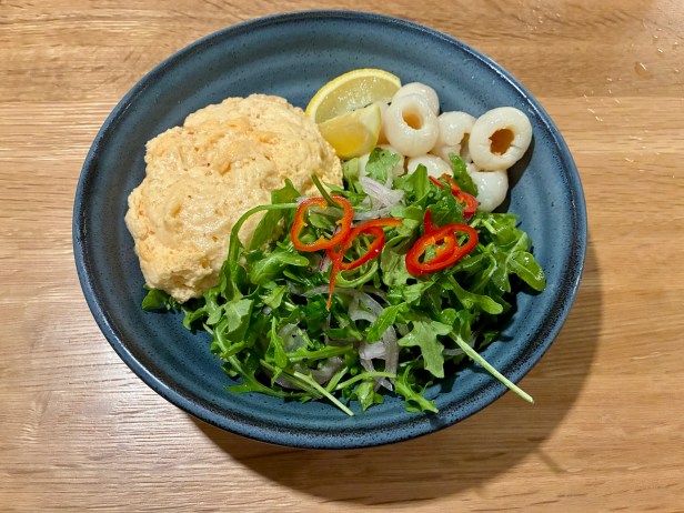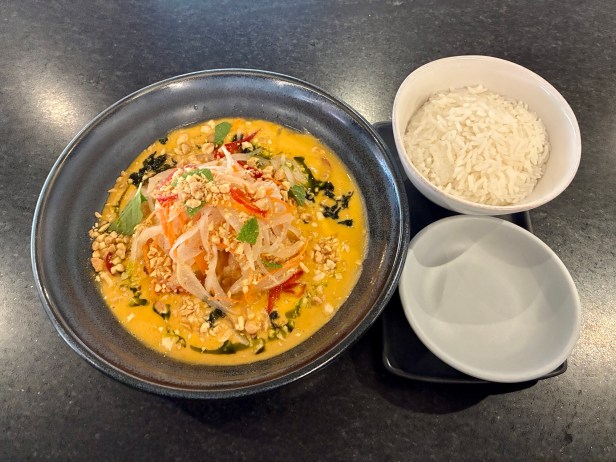 Just as the decor seems like an updated version of classic Midcentury style, the menu incorporates contemporary versions of what might be described with the overused phrase “comfort food,” albeit with some global touches that appropriately reflect the diversity of the museum’s collections and intended audience. An old school appetizer, salmon rillettes, was a flavorful, coarse pate of smoked fish. It was a rare treat but has since been replaced by salmon crostini with whole slices of fish instead of a spread. One can hope for its eventual return.
