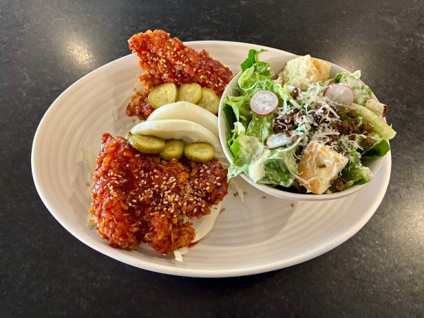 Sandwiches also showcase international influences. Alden’s version of a patty melt nearly overflows with copious grilled onions lending plenty of umami that is augmented with a melted blend of sharp cheddar and gouda, as well as tangy pickles. KFC buns, essentially Korean fried chicken served in bao come as a duo, each filled with thin, crisp poultry dressed with sesame seeds, pickles, and a drizzle of sweet chili sauce. A vegetarian option is grilled cheese with its typical companion of tomato soup. All salads come with fries or a small Caesar salad.