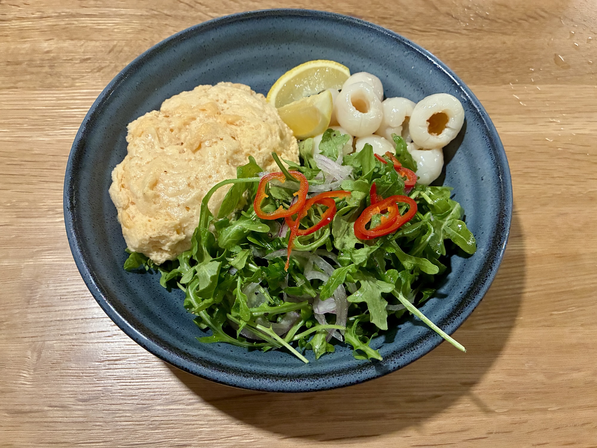 Other starters include fingerling potatoes with crisp skin drizzled with a honey glaze and cauliflower karaage fried in a Japanese style with a side of slightly spicy aioli. Salads begin with familiar favorites like a Caesar and a wedge but then incorporate global inspirations via a fattoush salad and another one defined by lychee fruit and a coconut foam. Combined with arugula, the last item is the biggest curveball on the menu, and staff wisely advise customers ordering it to mix the ingredients for an optimal blend of sweet, bitter, and salty tastes.