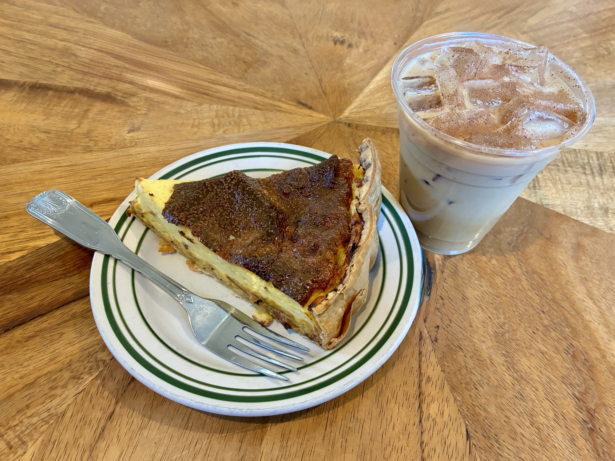 These standard selections are augmented by seasonal specials. In spring of 2025, the emphasis was on ube, its bold purple color contrasting with brown coffee, white milk, and green matcha. More recently, there has been a focus on strawberry with summer drinks resurrected for Valentine Day, including lattes made of fresh strawberry and mint with either matcha or hojicha. Both types of green tea are available plain as well, and chai and black tea are also possibilities. All of the drinks are available with whole, almond, or oat milk and can be served hot or iced.